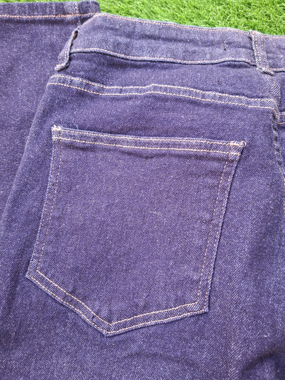 شلوار مام فیت مردانه سورمه ای جین پنبه اعلا نوار دوخت زرد