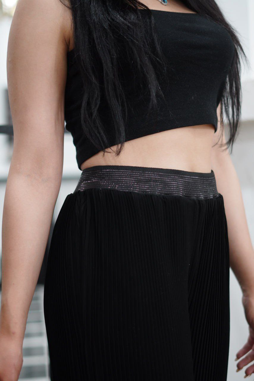شلوار پلیسه کرپ حریر مجلسی ترک فری سایز مناسب مجلس های شما این شلوار با دارا بودن آستر این کار،رو شیک ترین و خاص تر کرده تک رنگ مشکی بودن باعث شده با بتونید راحت تر اینکار رو لا لباس های مجلسی تون ست کنید