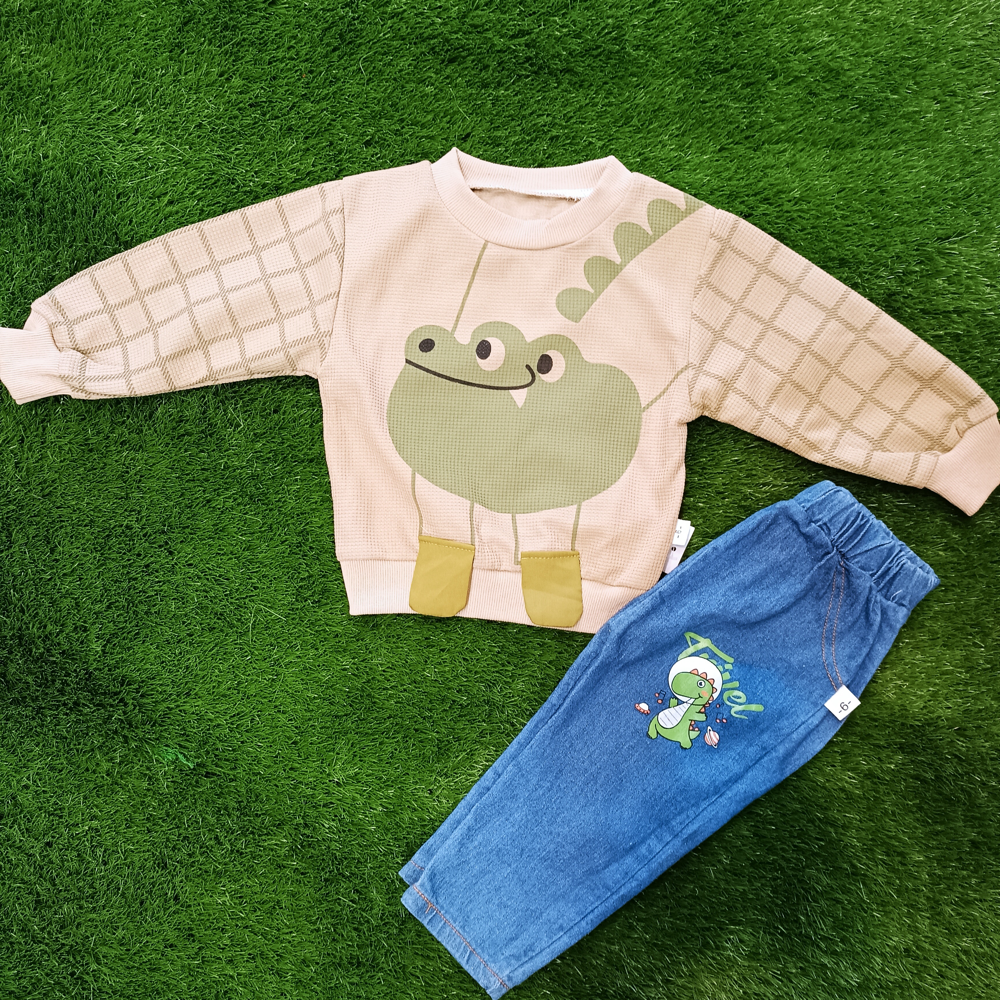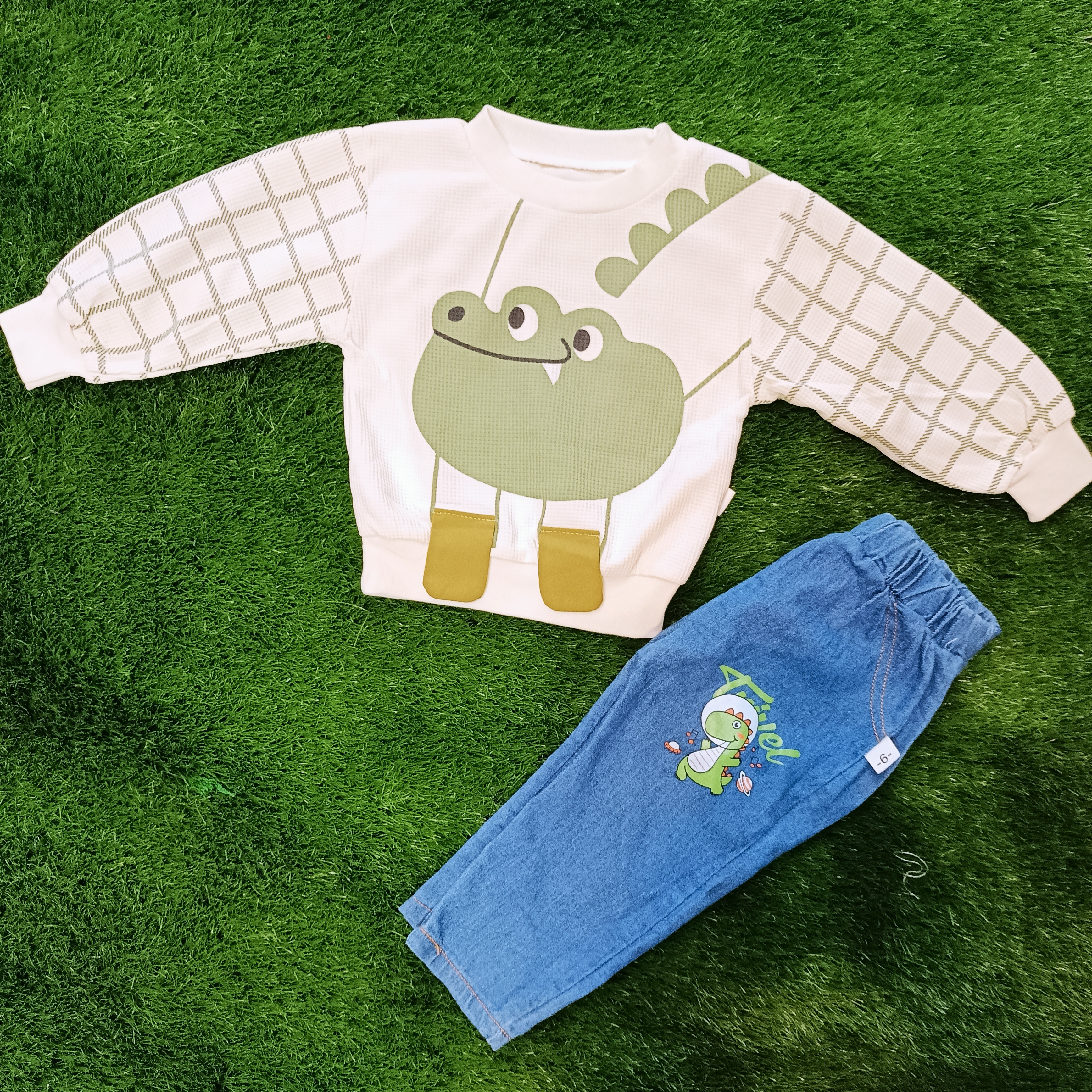 بلوز و شلوار قورباغه وارداتی نقلی (بلوز جودون شلوار پارچه ای طرح جین )