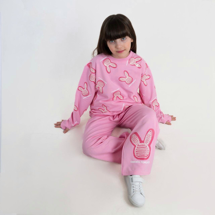 بلوز و شلوار ست دخترانه با طرح استیج و طرح خرگوش بلوز استین فینگر دار و جنس دورس اعلا شلوار بگ چاکدار از جنس گلکسی پنبه